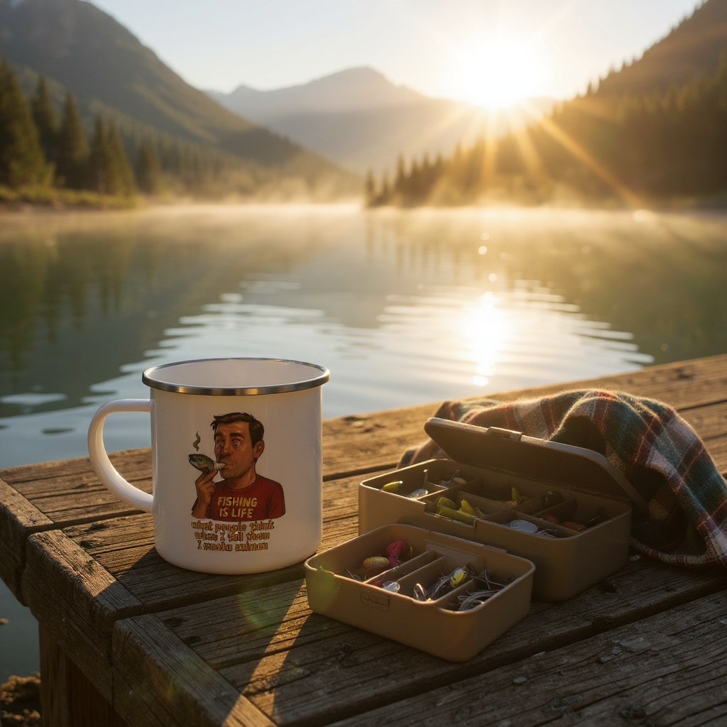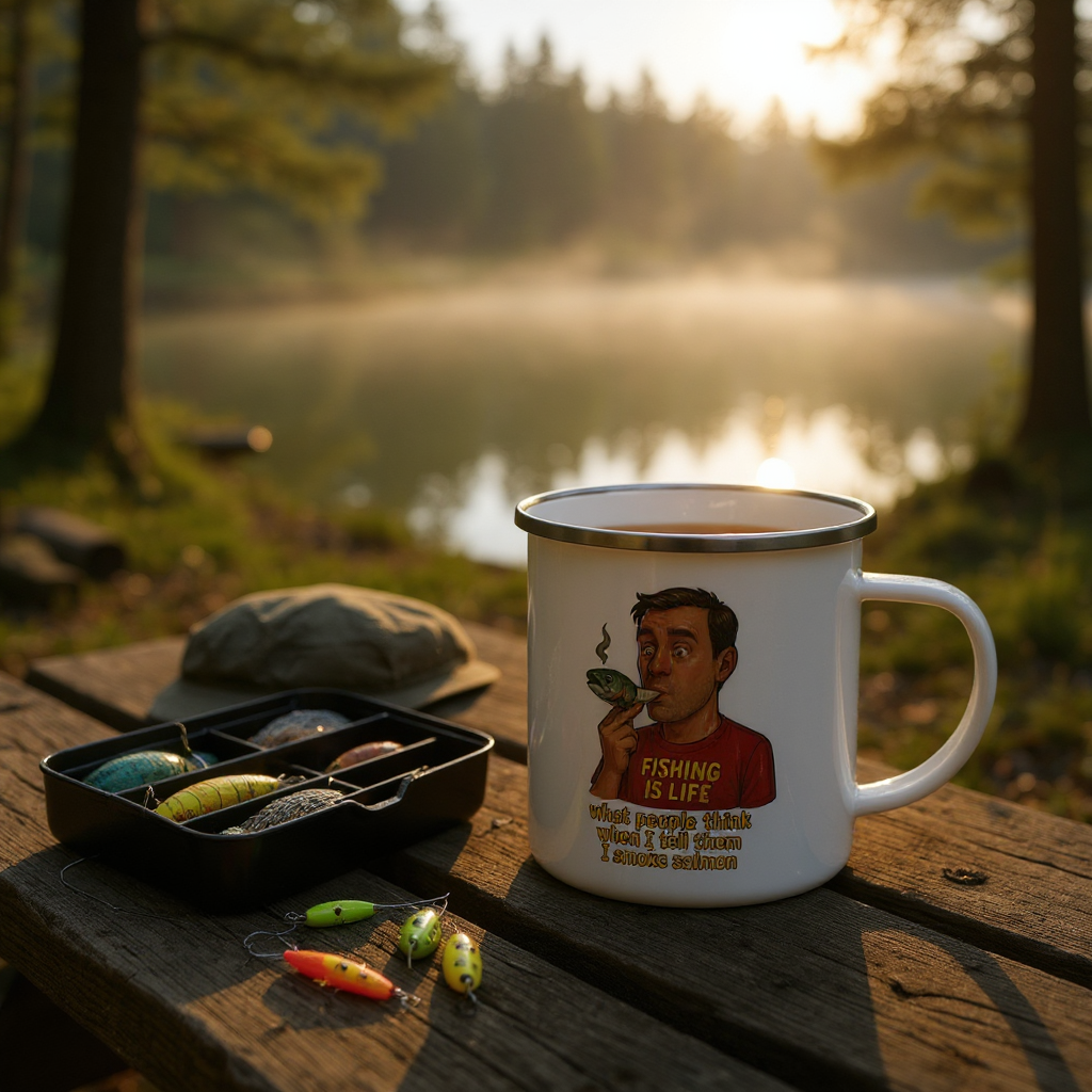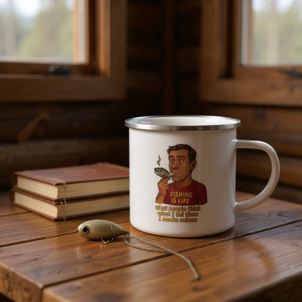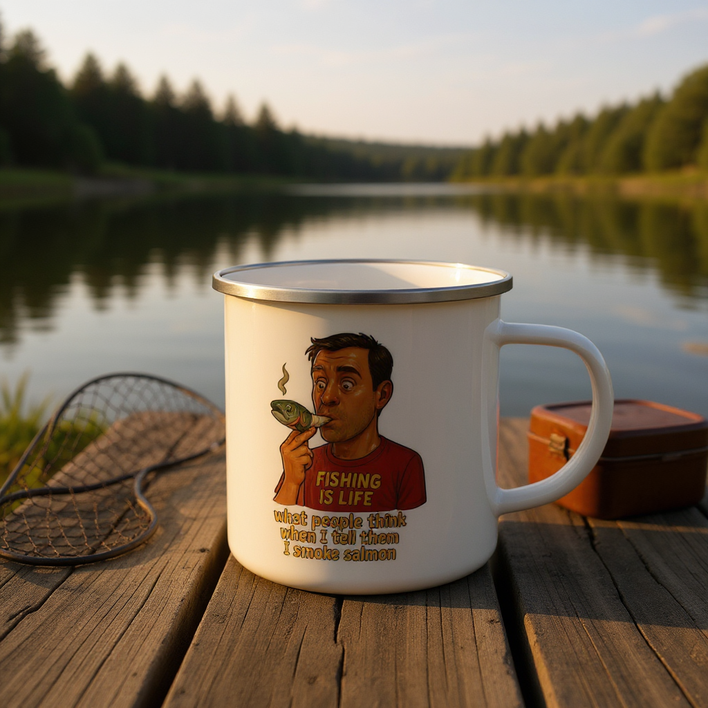 Funny Fishing Enamel Mug | Unique Camping Cup | Perfect Gift for Anglers, Fishermen, Dad, Outdoors, Birthday, Meme Series