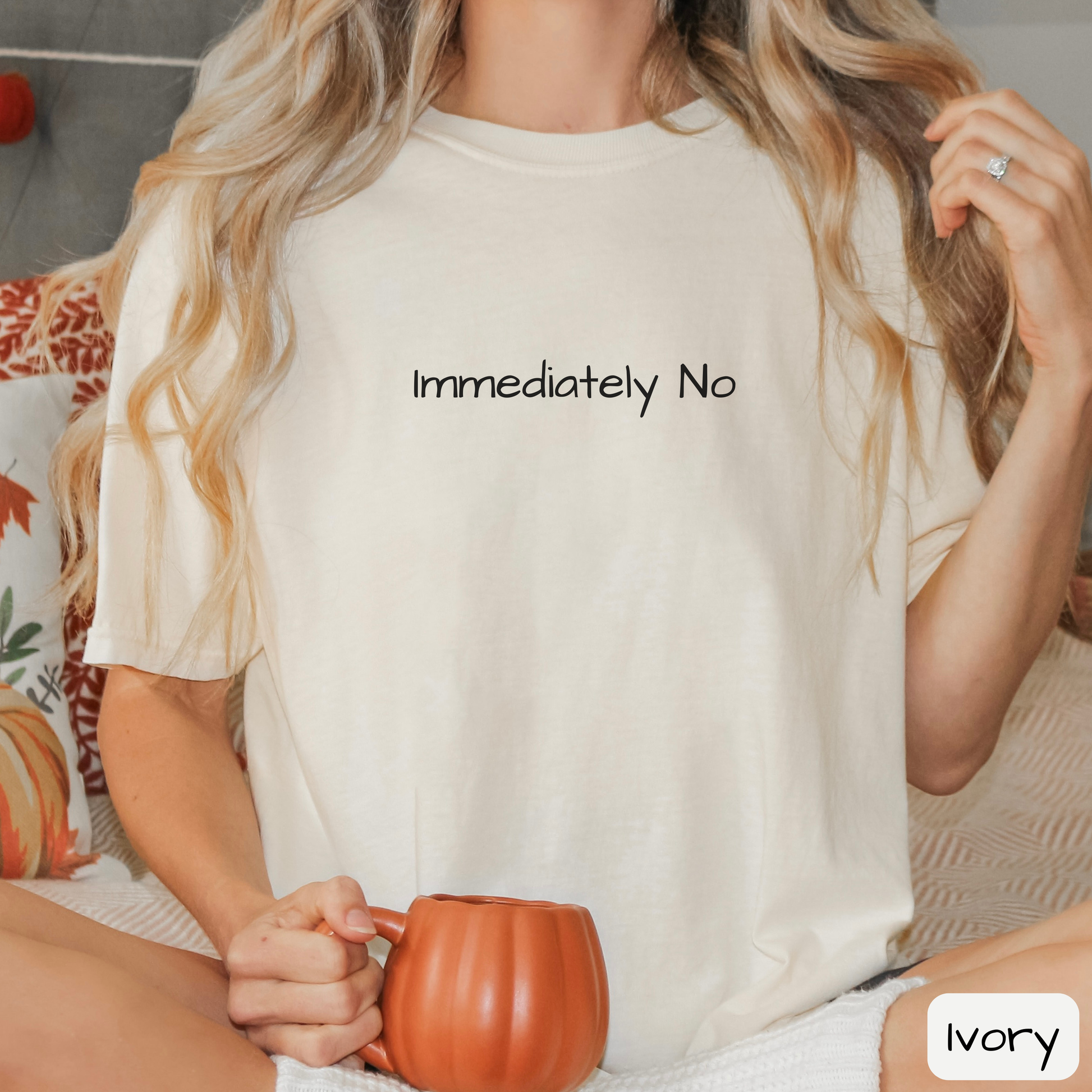 Say it. Wear it. Mean it. This “Immediately No” shirt is for anyone who’s mastered the art of instant rejection—with style. Whether you're dodging bad ideas, awkward invites, or questionable vibes, this tee delivers the message loud and clear. Soft, bold, and unapologetically direct—just like you. A perfect gift for sarcasm lovers, expressive personalities, and anyone who doesn’t sugarcoat.