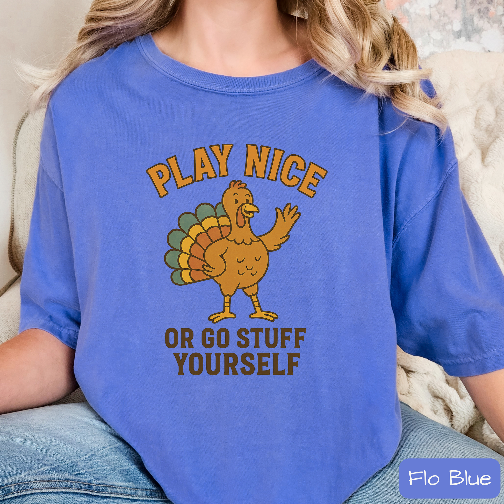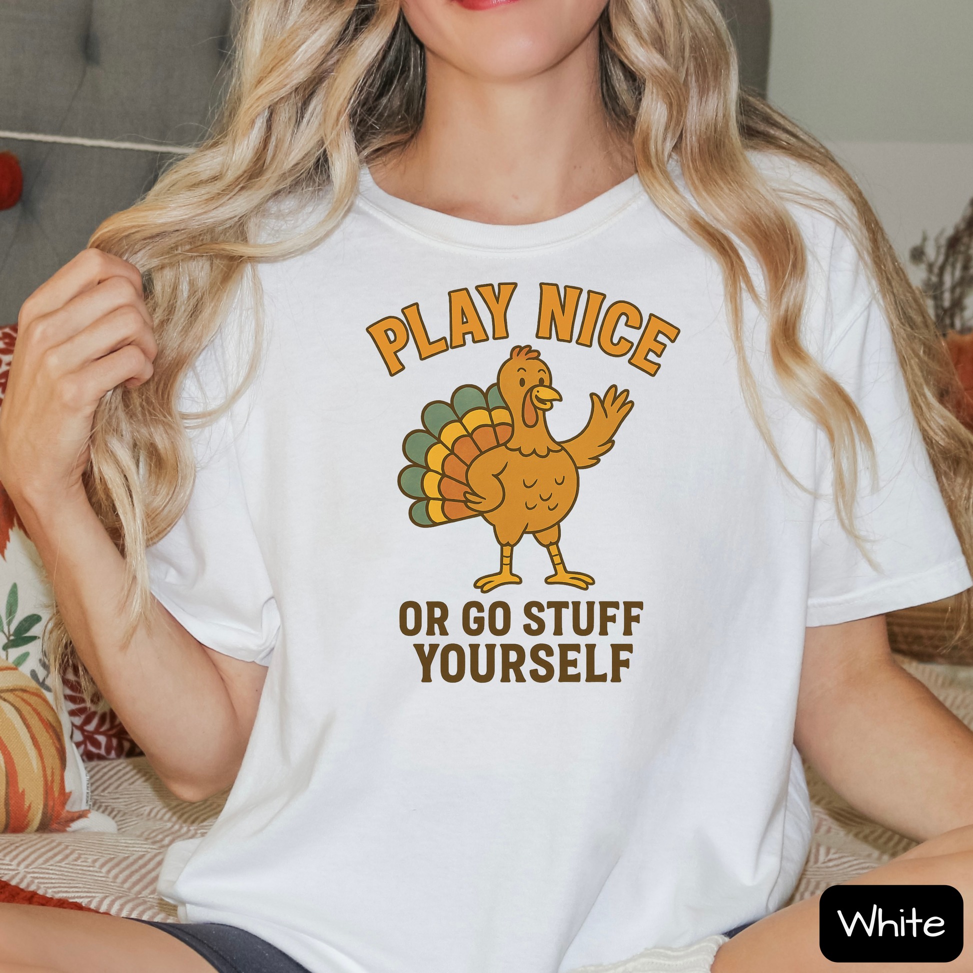 Play Nice Or Go Stuff Yourself Shirt – Funny Thanksgiving Tee for Adults, Trending T-Shirt