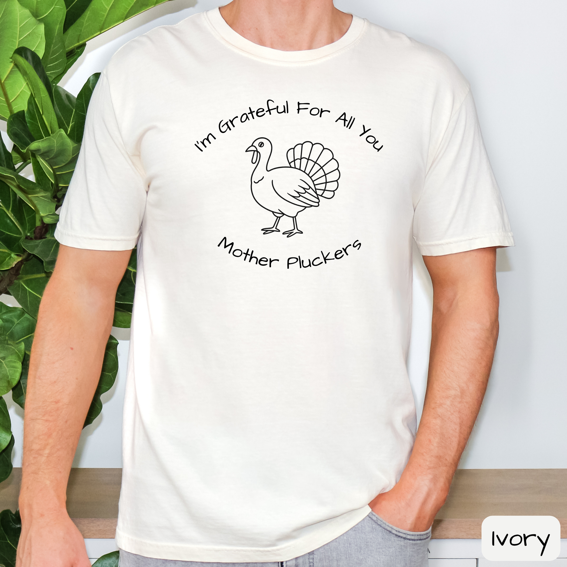 This “Mother Pluckers” shirt brings bold humor to the Thanksgiving table with a side of sass. Whether you're hosting, roasting, or just surviving the family feast, this tee says what everyone’s thinking—with style. Soft, festive, and unapologetically funny, it’s perfect for holiday gatherings, group photos, or gifting to your favorite troublemaker.